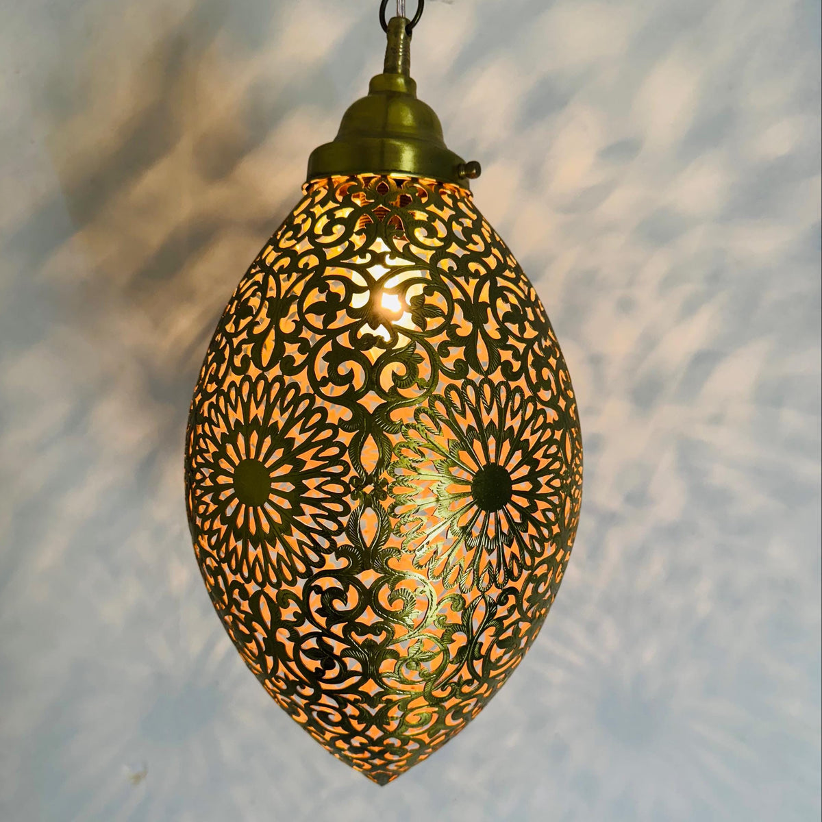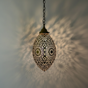 Bring warm atmosphere and artisan character into your space with this handmade Brass pendant lamp. Designed with an intricate pierced metal pattern, this hanging light fixture casts beautiful shadow effects that transform any room into a calm, inviting environment.